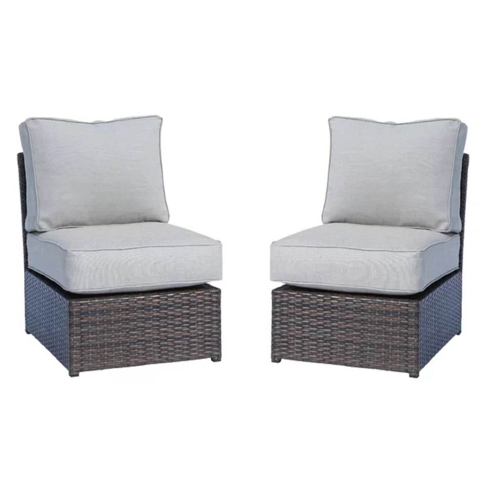 Create a welcoming and comfortable outdoor retreat with this fully assembled 5-piece wicker sofa set, designed to seat up to four people. Crafted from durable, weather-resistant resin wicker over a sturdy aluminum frame, this set withstands the elements season after season. Plush gray cushions made from water- and UV-resistant polyester provide lasting comfort and feature zippered, machine-washable covers for easy care. The modular design lets you customize your seating arrangement using included furniture clips, tailoring your space for relaxation or entertaining. A tempered glass coffee table completes the set, offering a sleek, easy-to-clean surface perfect for drinks and décor. Enhance your patio with this elegant and practical outdoor furniture set—no assembly required. Elevate your outdoor comfort today.