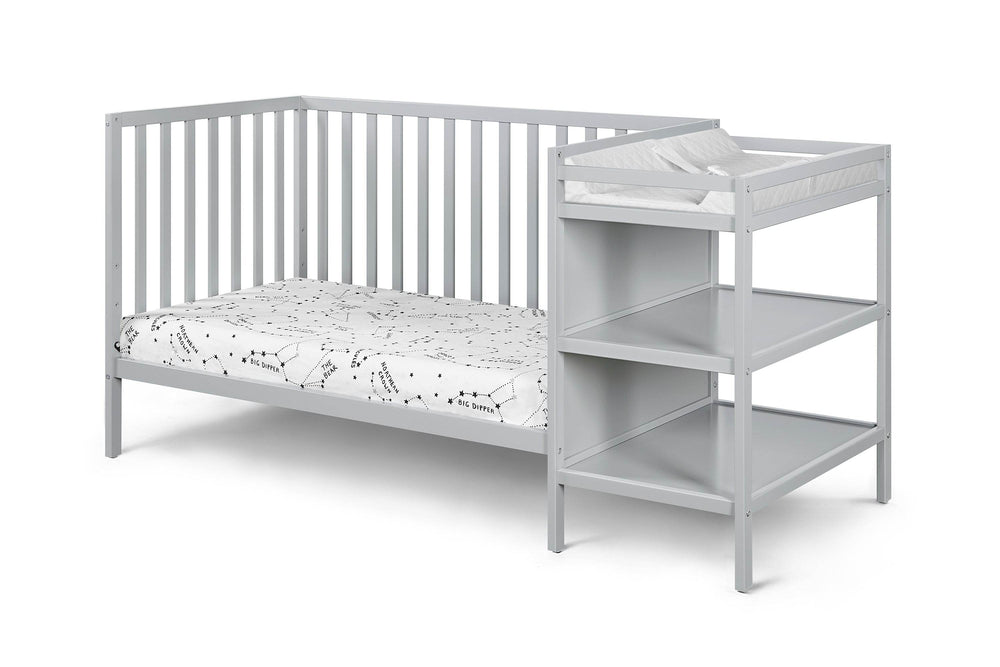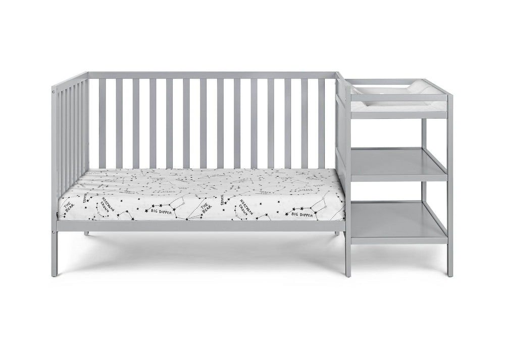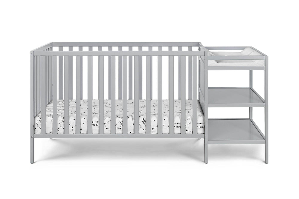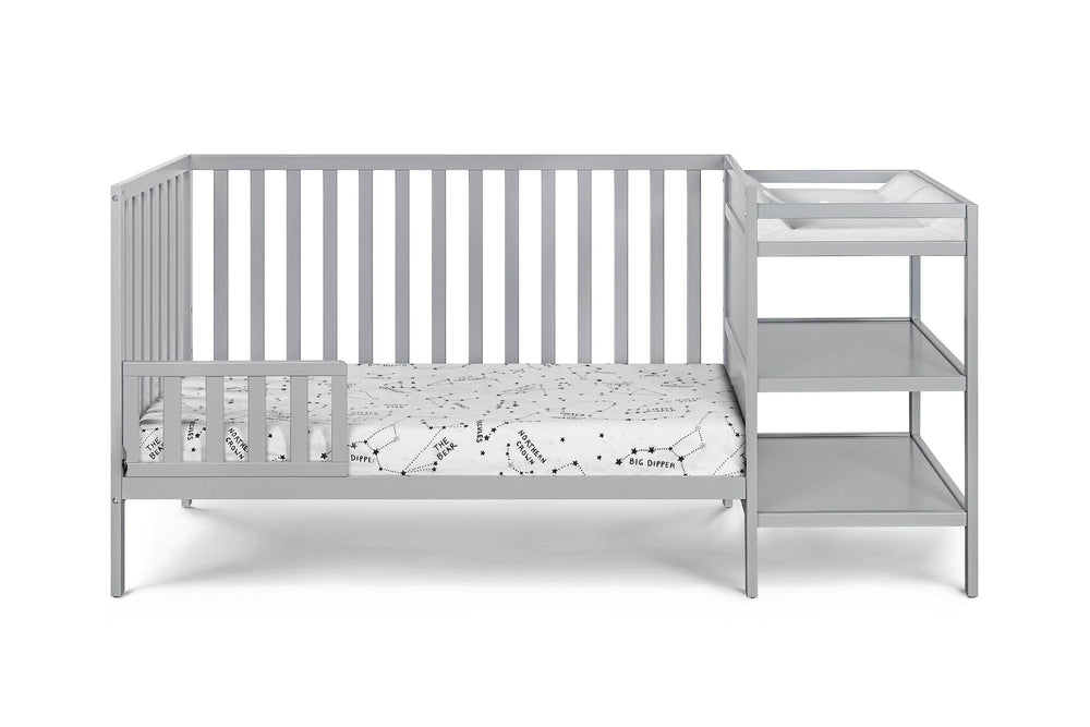 Designed for modern parents who value style and functionality, the Palmer 3-in-1 Convertible Crib and Changer Combo in gray is the perfect nursery solution. Crafted from sturdy solid wood, it ensures durable safety while offering a contemporary look that complements any baby room. This versatile piece features three mattress support positions, adapting as your little one grows for long-lasting use. The attached changing table conveniently includes two spacious shelves, providing ample storage for diapers, clothes, and baby essentials, keeping everything within easy reach. Compact yet spacious with dimensions of 71.5 inches long, 29.75 inches wide, and 35 inches high, it fits well into smaller rooms without sacrificing style or usability. Make your nursery both chic and practical—elevate your baby’s comfort and your daily routine today.