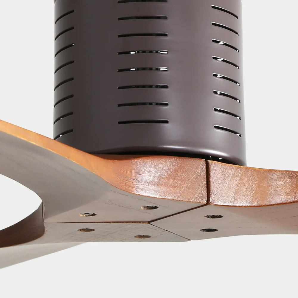 52-inch indoor wood ceiling fan features solid walnut blades and a whisper-quiet copper DC motor with reversible airflow for year-round comfort. Its flush mount design suits patios, living rooms, and bedrooms, delivering efficient cooling in summer and warm air circulation in winter.