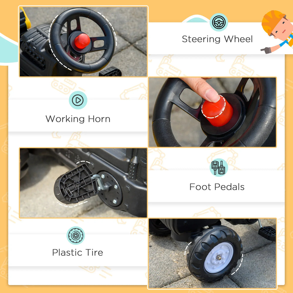- Realistic Working Design: Pedal-driven with forward/backward movement and controllable digging bucket.
