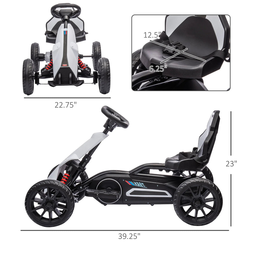 Give your child the thrill of driving their very own electric go-kart designed for safe outdoor adventures. Perfect for kids ages 3 to 8, this white ride-on toy offers adjustable speeds between 1.9 to 3.1 mph, letting young drivers gain confidence at a pace that suits them. Its durable plastic frame and EVA wheels ensure smooth rides across cement, asphalt, and brick surfaces, encouraging exploration of a variety of outdoor terrains. With both forward and reverse driving modes, kids enjoy a realistic driving experience while the secure two-point seat belt and supportive backrest provide safety and comfort. Compact yet spacious, it measures 39.4 inches long, 22.8 inches wide, and 23 inches high, fitting well in driveways and backyards. Spark hours of active play and adventure—ignite your child’s imagination and motor skills with this fun and safe go-kart today.