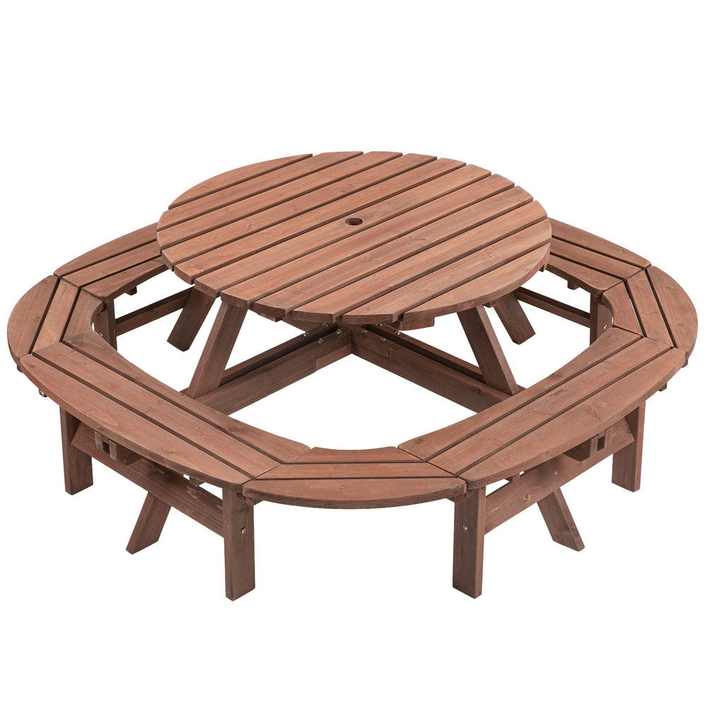 10-12 Person Round Fir Wood Outdoor Picnic Table