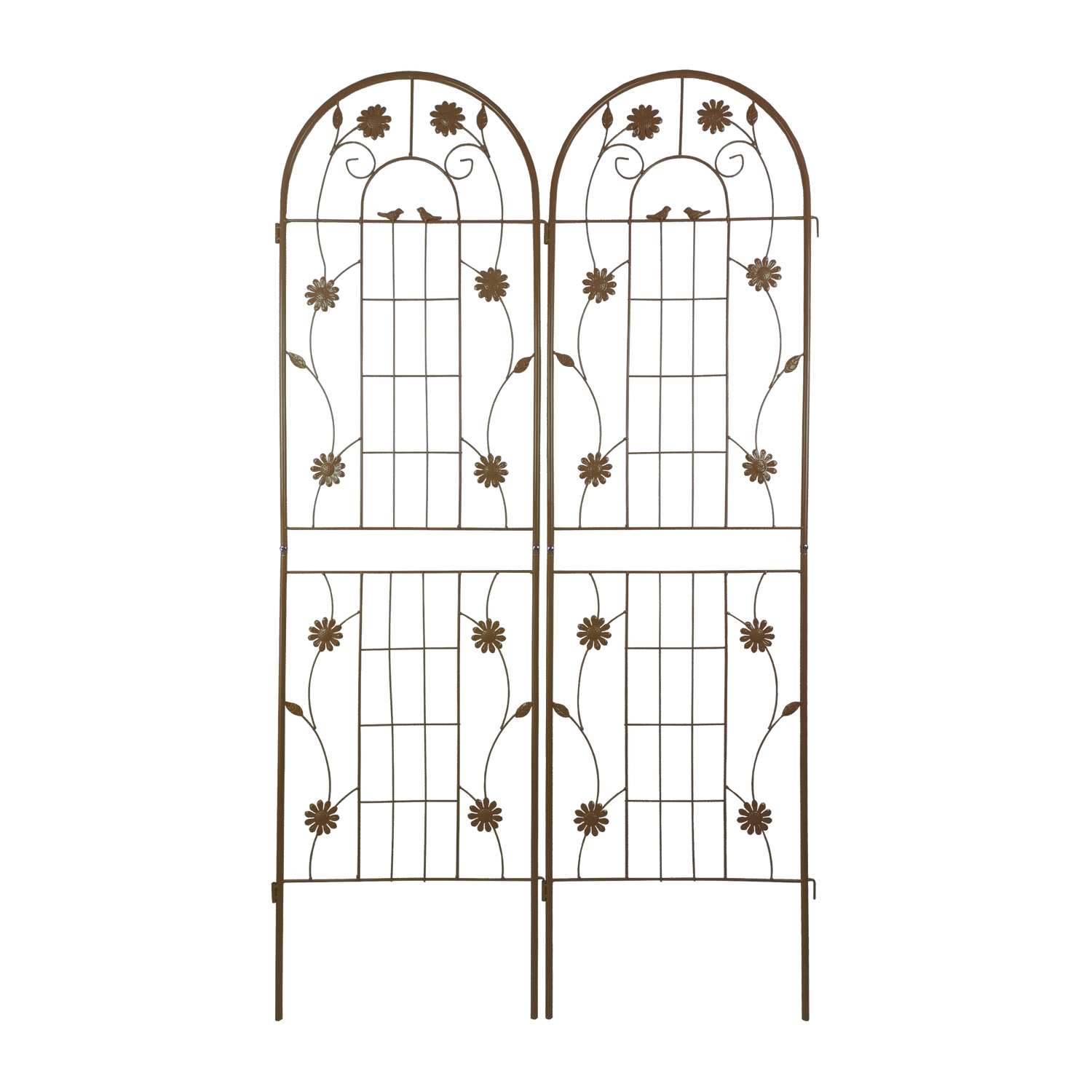 Support your garden’s growth and style with this 2-pack of metal garden trellises, each standing 71 inches tall and 19.7 inches wide. Crafted from durable iron with a powder-coated, galvanized finish, these brown trellises resist rust and weather damage to provide reliable outdoor flower support season after season. Their French Country design adds a charming touch to any garden, perfect for training ivy, roses, clematis, and other climbing plants to grow beautifully and healthily. Easy to assemble with pre-cut and pre-drilled holes, these trellises can be used individually or combined to create decorative screens or garden corners. Whether you want to enhance your outdoor space or add a unique feature to events like weddings, these trellises provide both function and style. Elevate your garden’s appeal and plant support needs today.