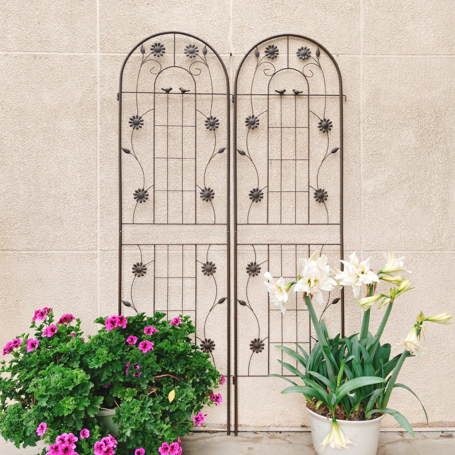 - Two 71-inch high trellises provide ample climbing plant support