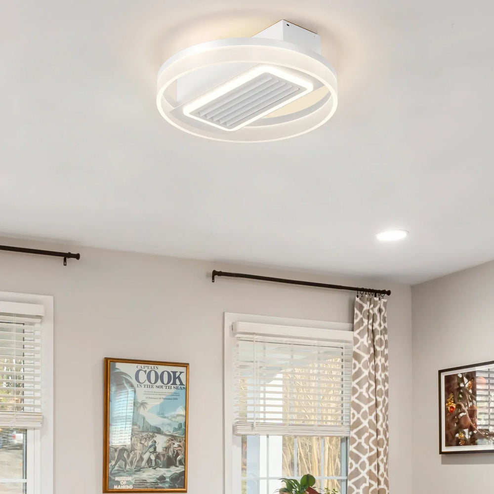 Enhance your living space with this sleek 20-inch LED bladeless ceiling fan, designed to provide comfortable air circulation and adjustable lighting. Its modern flush mount style complements kitchens, living rooms, bedrooms, and dining areas with minimalist appeal. Equipped with a whisper-quiet DC motor and 6-speed control, you can easily customize airflow to match your comfort needs. In summer, enjoy a cool, gentle breeze directed downward, while in winter, the reversible airflow circulates warm air to every corner of your room. The fan and LED illumination operate independently, offering flexible control for any mood or season. Crafted from durable acrylic and iron, this ceiling fan light combines style and function to elevate your home environment. Elevate your comfort and ambiance today.