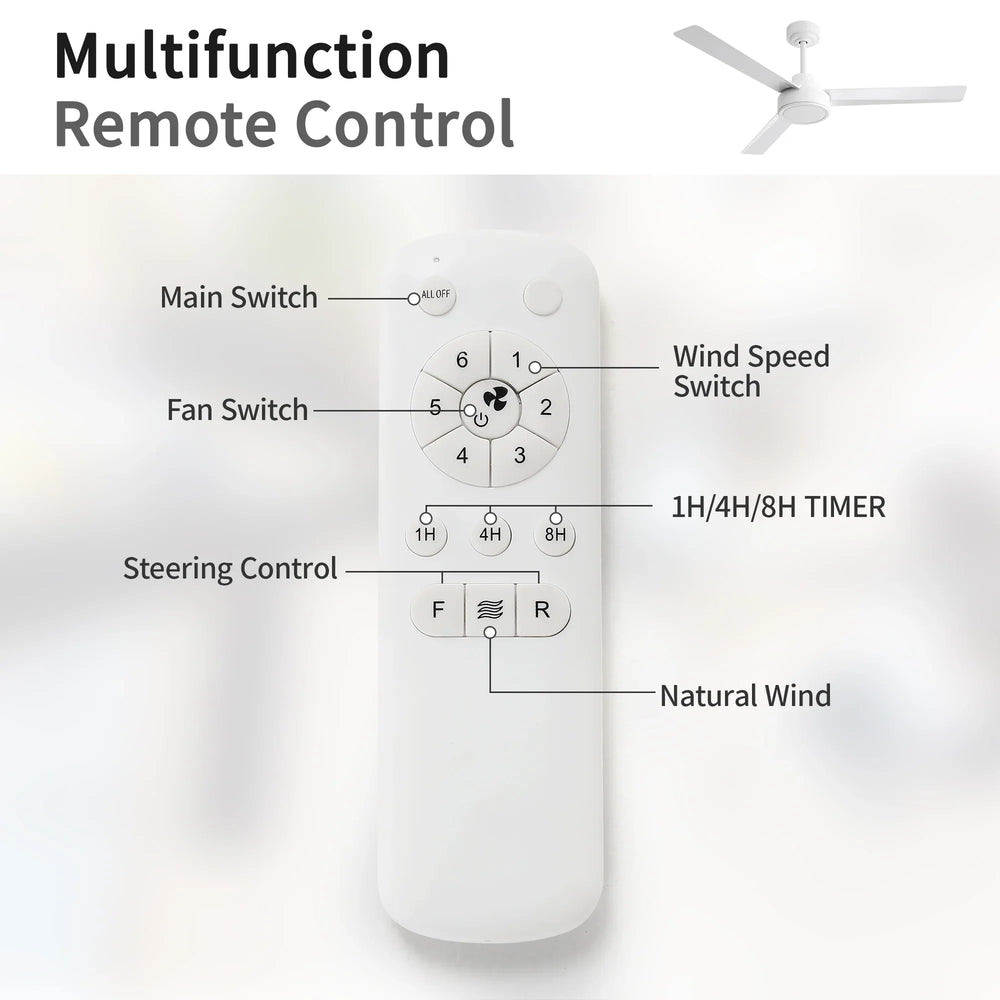 52-Inch White ABS Remote Control Ceiling Fan Without Light