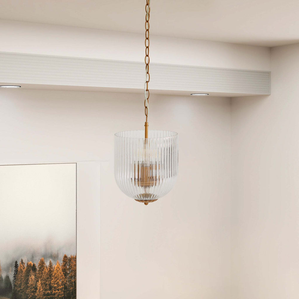 Elevate your living space with the Garnet Pendant Lamp, featuring a refined blend of coarse gold metal and clear glass for a striking, modern look. This pendant lamp casts a soft, warm glow that creates an inviting and cozy atmosphere in any room. Its transparent glass shade beautifully showcases the bulb while complementing various interior styles from mid-century modern to contemporary. With an impressive 68.9-inch (175 cm) adjustable drop and a generous 59-foot (18 m) cord length, this fixture is perfect for dining rooms, kitchens, and living areas where style meets functionality. Crafted from durable metal and glass, it promises lasting quality and easy installation with standard E26 bulbs. Brighten your home with this versatile pendant lamp and turn any space into a sophisticated haven. Elevate your interior lighting today.