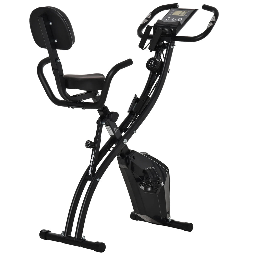 Take your fitness routine to the next level with this 3-in-1 stationary exercise bike that easily converts between upright and recumbent modes. Designed for home use, it helps you burn calories, build endurance, and tone your upper and lower body simultaneously. The adjustable seat ensures a comfortable fit for all body types, while the eight-level magnetic resistance allows you to customize your workouts from light cardio to intense training. The integrated arm resistance bands add upper-body strength training, maximizing your results. Compact and foldable, this bike features smooth-rolling wheels for effortless storage and relocation. Keep track of your progress with the LCD monitor that displays speed, distance, duration, heart rate, and calories burned. Whether you want a low-impact cardio workout or total body conditioning, this black steel frame bike is built to deliver.
