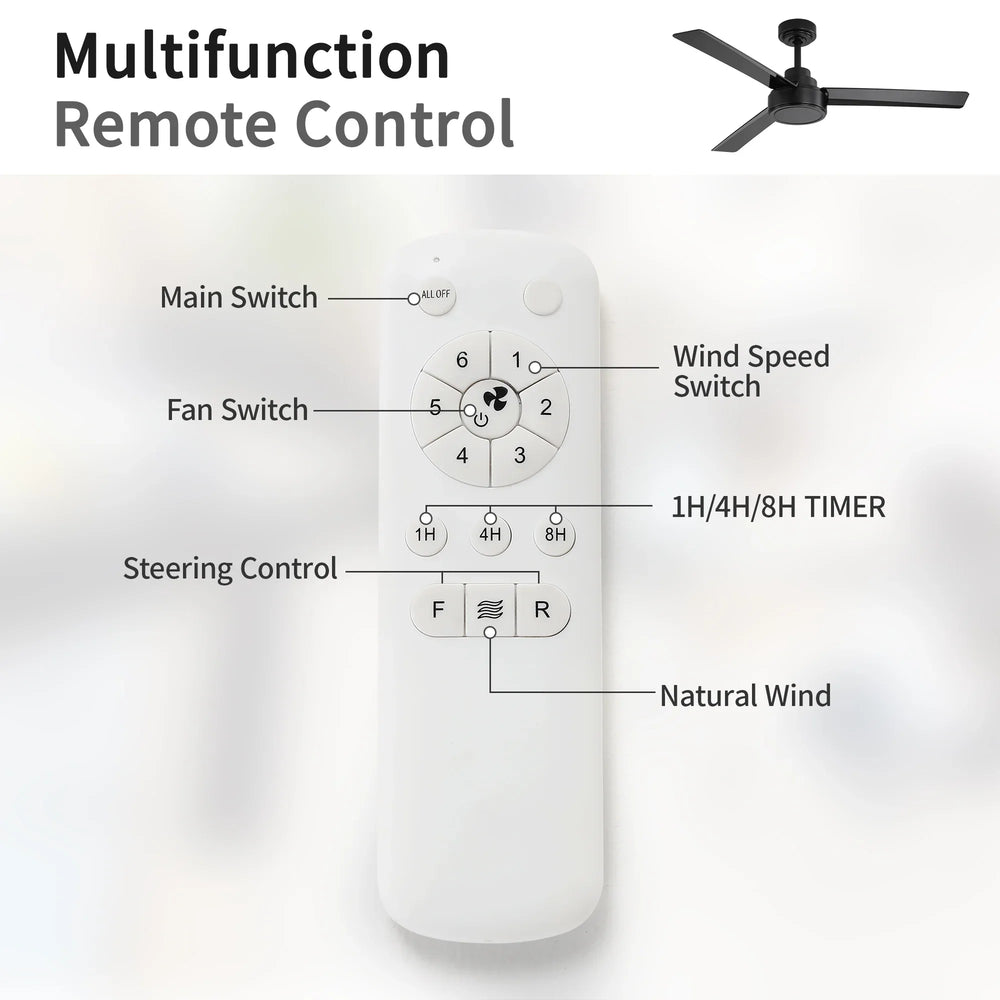 - Remote control supports 6 speeds and timer adjustment
