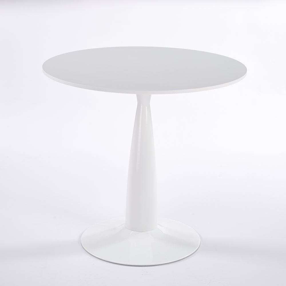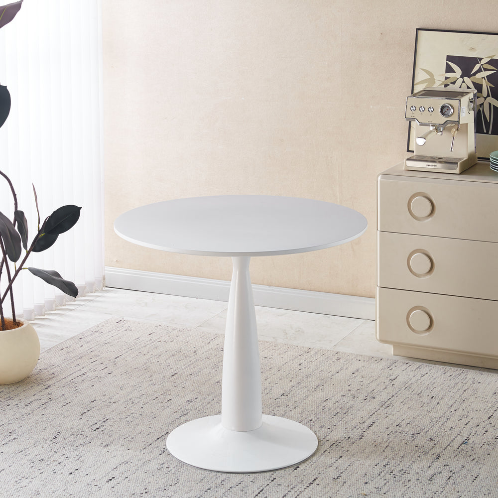 Bring a touch of timeless elegance to your home or office with this versatile mid-century modern pedestal table. Featuring a sleek white MDF top paired with a sturdy metal tulip-style base, it combines minimalist design with durable construction. Measuring 31.5 inches in length and width, and standing 28.9 inches tall, this table comfortably accommodates 4 to 6 people, effortlessly functioning as a dining table, coffee table, or side table. The rounded edges create a safe environment for children, while the single-pedestal base frees up floor space, perfect for smaller rooms and modern interiors. Easy to clean and quick to assemble, it’s the perfect addition to any living room, kitchen, or office space. Elevate your everyday gatherings and workdays with this stylish, functional centerpiece.