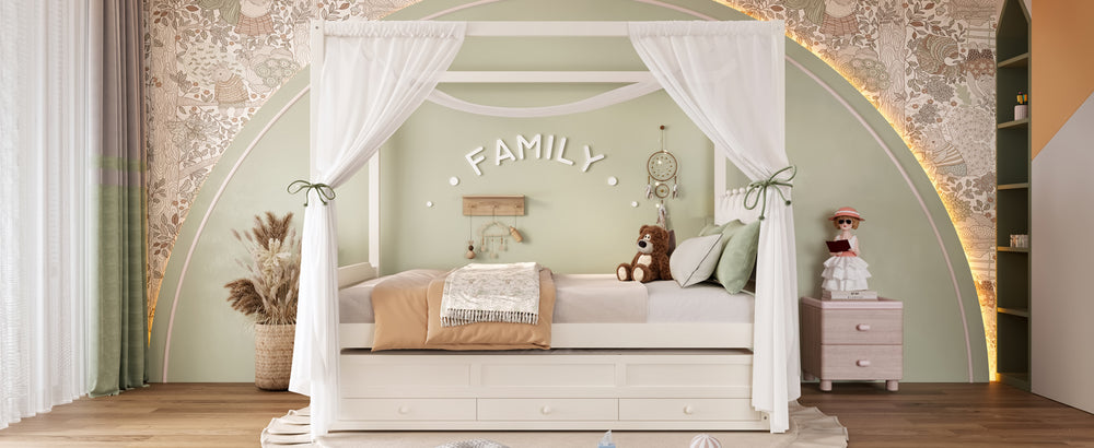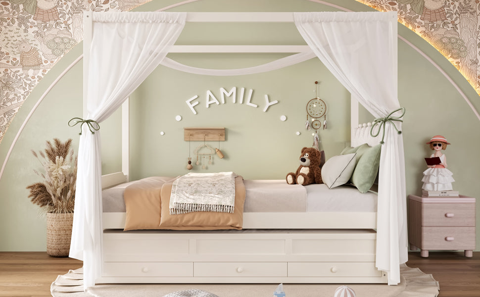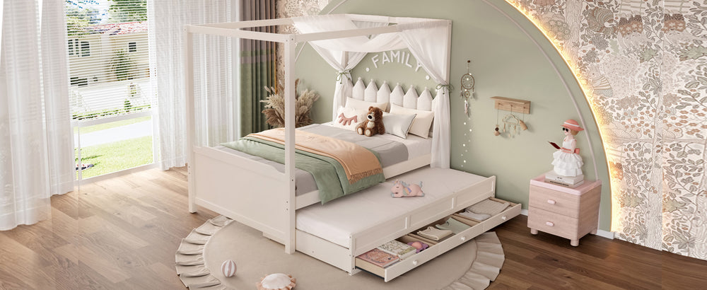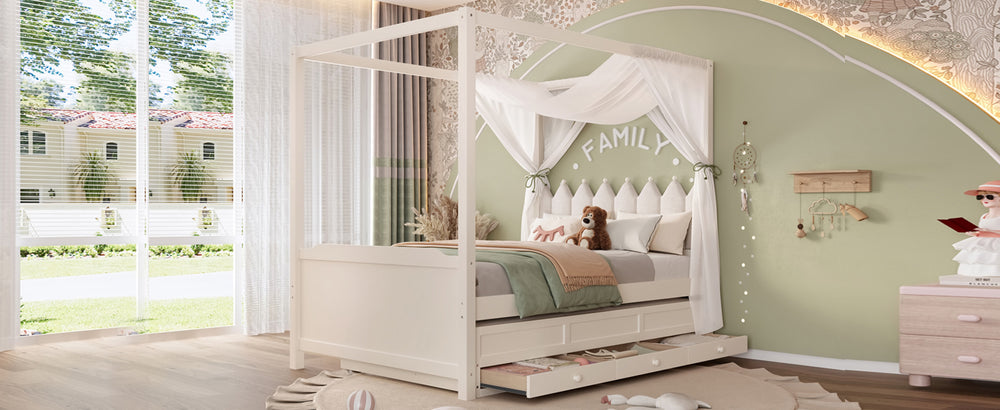Enchant Your Child’s Room with the Princess Canopy Bed Featuring Trundle and Storage