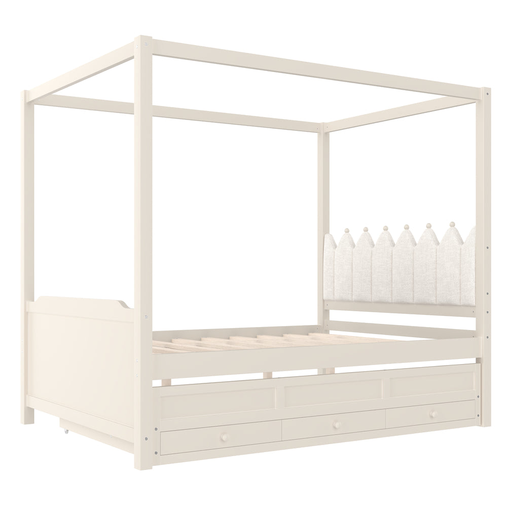 - Princess Canopy Design: Fairytale-inspired frame with an upholstered crown headboard sparks imagination.