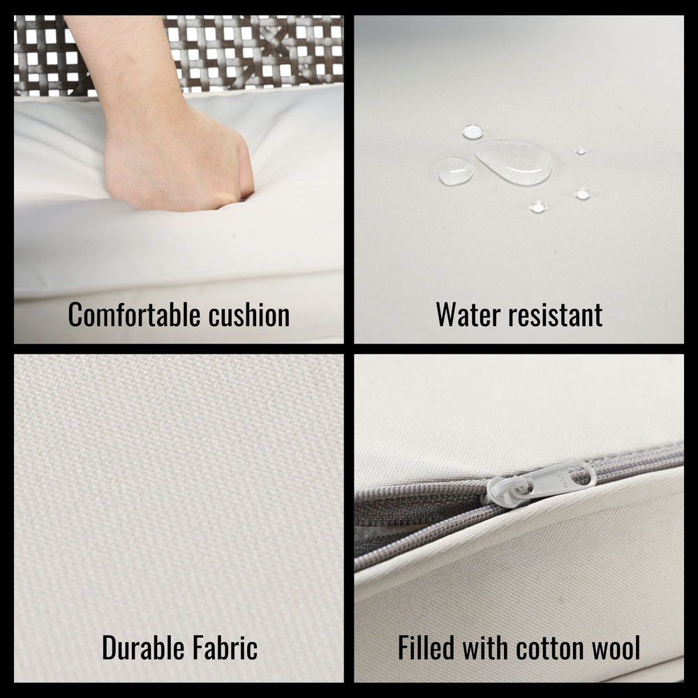 Cushions: Spot Clean Recommended, Water Resistant Fabric