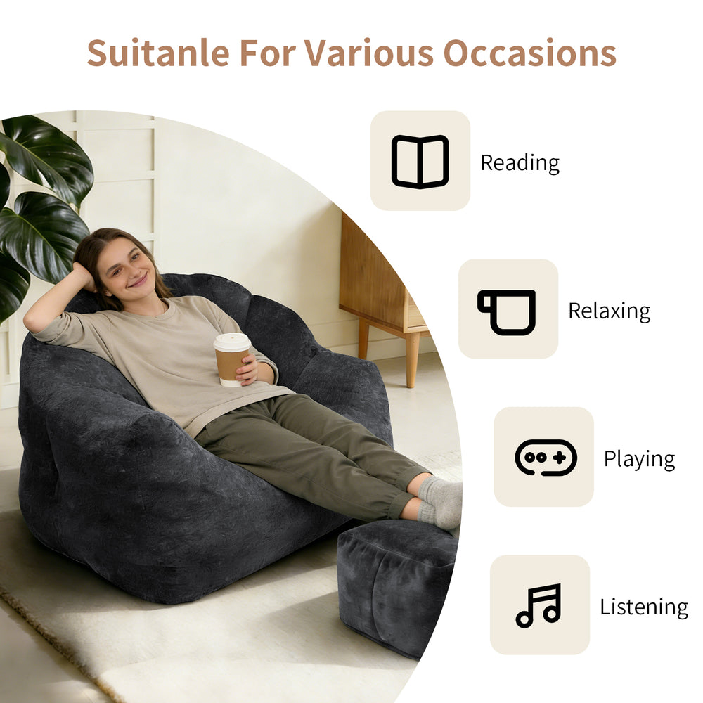 Sink into the plush embrace of this adult bean bag chair, expertly filled with high-density memory foam to deliver unmatched comfort and lasting support. Crafted with soft flannelette fabric in a sleek black finish, it offers a cozy yet durable seating option perfect for living rooms, bedrooms, or reading nooks. The ergonomic armrest design enhances relaxation, while the chair’s generous size comfortably accommodates both adults and children. Pre-filled and ready to enjoy right out of the box, it expands to its full form within 48 hours, ensuring optimal shape retention and resilience. The removable, machine-washable cover and non-slip bottom keep your space tidy and secure. Elevate your relaxation space today with this stylish and functional lazy sofa chair.