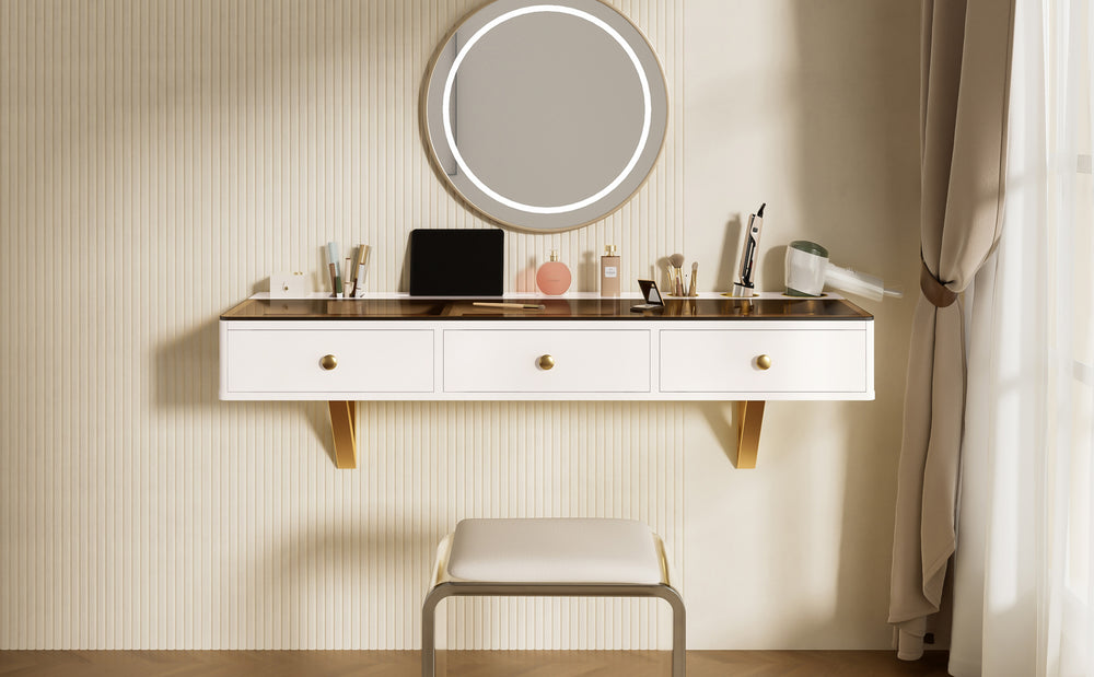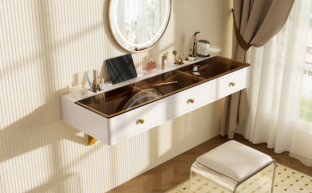 Wall-Mounted Multifunctional Vanity Table With Storage Drawers