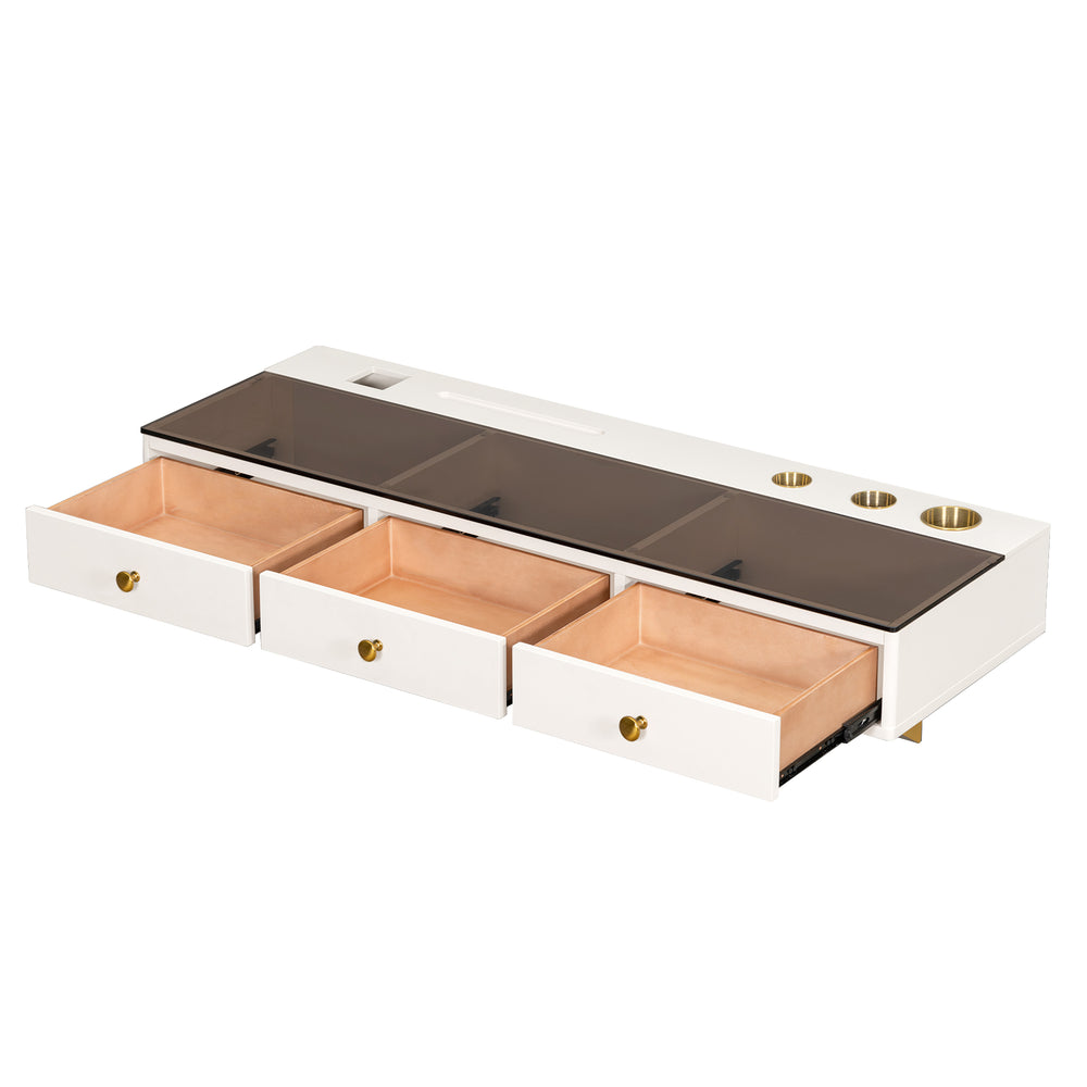 - Three Spacious Drawers: Provides ample storage for cosmetics, brushes, and personal items.