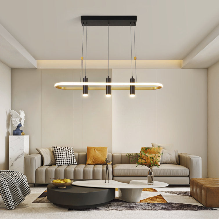 Bring a stunning modern touch to your living spaces with the Javeriah 4-Light Dimmable LED Pendant Light. Crafted from high-quality aluminum and sleek metal finishes in matte black and gold, this pendant light offers both style and functionality. Its soft silicone lampshade ensures flicker-free, eye-friendly illumination, perfect for dining rooms, kitchen islands, offices, or living rooms. Easily customize your lighting atmosphere using the included remote control, which adjusts brightness from 5% to 100% and switches between three color temperatures (3000K, 4000K, 6500K) with memory function for a tailored ambiance. The adjustable 59-inch (150 cm) wire lets you choose the perfect hanging height, enhancing any ceiling style including sloped ceilings. Designed for hardwired installation with all necessary hardware included, this energy-efficient 45-watt LED fixture delivers 5000 lumens of bright, warm light to transform your space. Upgrade your home’s atmosphere with this versatile and elegant pendant light today.