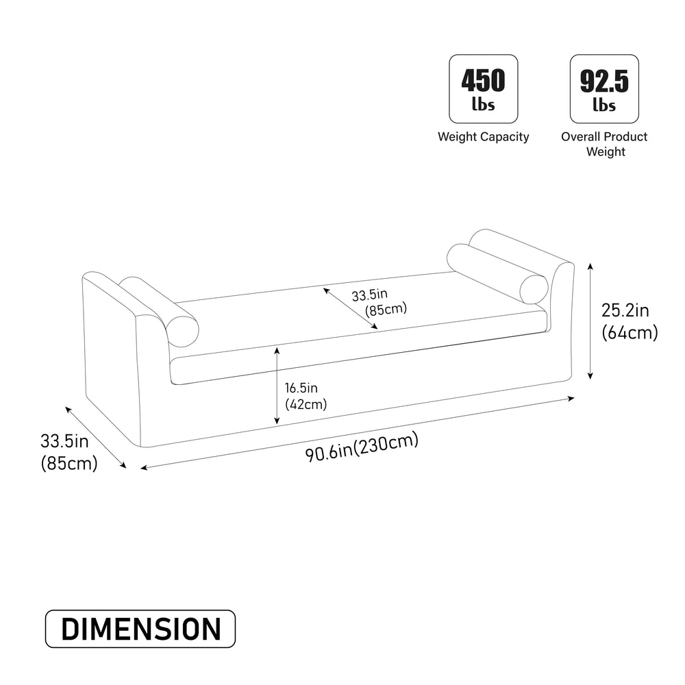 Enhance your living space with this elegant chaise lounge designed for ultimate comfort and style. Upholstered in soft beige chenille fabric, it offers a plush seating experience ideal for living rooms, bedrooms, entryways, or dormitories. The chaise features supportive springs and sponge cushioning that contours to your body, while two removable bolster pillows provide additional comfort and back support. Its sturdy wooden frame and black legs ensure long-lasting durability and stability, supporting up to 450 pounds. This versatile piece combines minimalist design with practical comfort, making it perfect as a window-side bench, footstool, or extra seat wherever you need it. Easy to assemble with included tools and instructions, this chaise lounge adds a modern touch and inviting relaxation to any room. Elevate your home décor and unwind in style today.