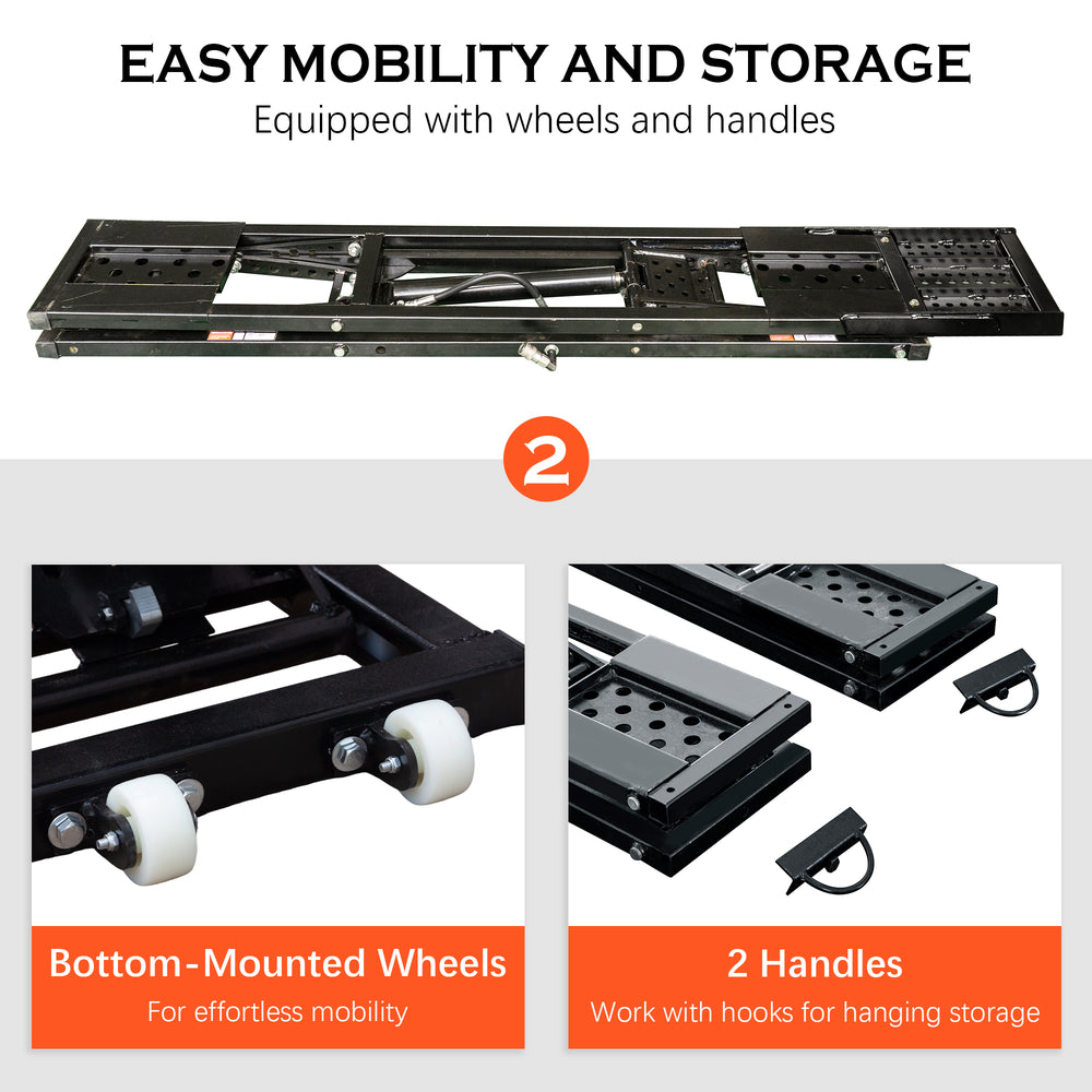 Designed for cars, SUVs, and trucks, this portable car lift delivers reliable lifting power with a 7,000 lbs capacity. Crafted from high-strength Q235B carbon steel, it offers superior stability and durability to support a wide range of vehicles safely. The adjustable lifting columns provide a flexible height range from 10.2 inches to 26.8 inches, giving you ample clearance for vehicle maintenance and inspection. With mechanical safety locks, you can securely hold your vehicle in place, ensuring safe and steady lifting. Thanks to its foldable design and four high-strength nylon wheels, this lift is easy to transport and store, making it an essential tool for both professional mechanics and DIY enthusiasts. Elevate your garage capabilities and tackle automotive projects with ease—upgrade your toolkit today.