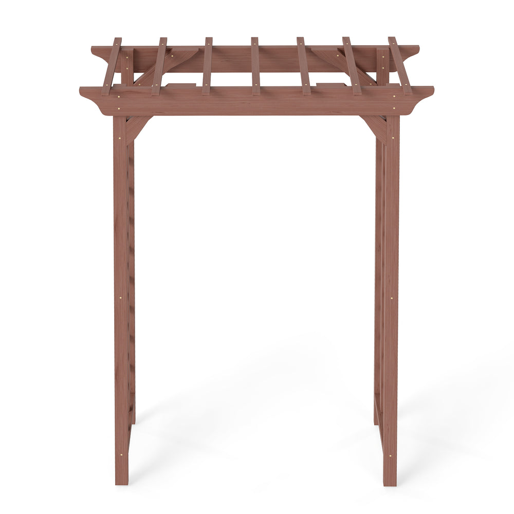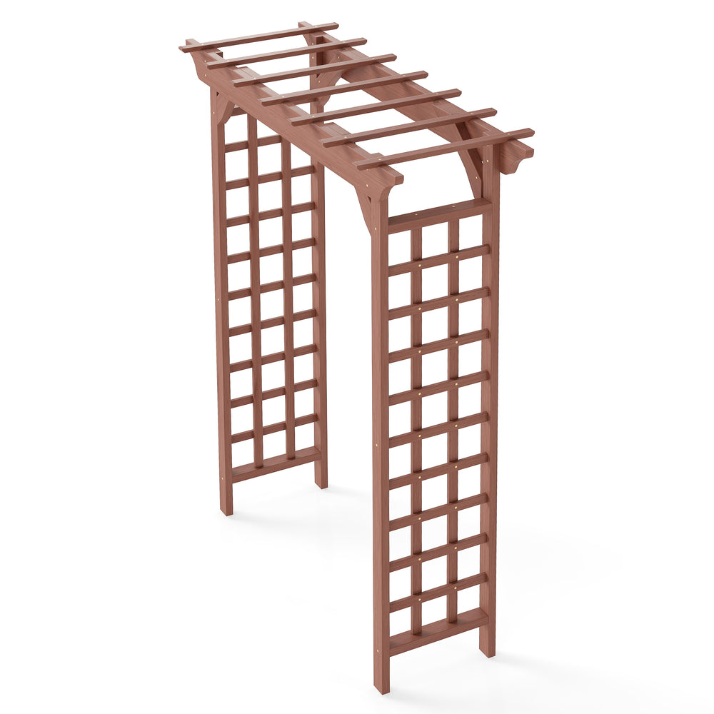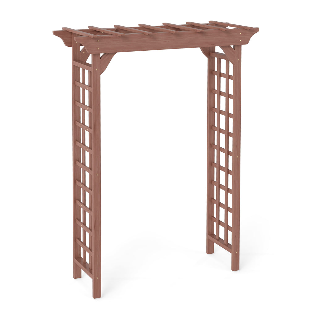 Create a stunning focal point in your garden or event with this beautifully crafted wooden arbor. Constructed from premium fir wood, its sturdy solid wood frame offers lasting durability and stability, perfect for weddings, ceremonies, or as a decorative garden pergola. The warm brown finish adds natural elegance, blending effortlessly with outdoor surroundings or festive décor like Christmas displays. Standing 85 inches tall with a 63-inch length and 26-inch width, this arbor provides ample structure for climbing plants to flourish or to serve as a charming backdrop for special occasions. Designed to withstand the elements, it’s a versatile piece that enriches any backyard oasis or event space. Elevate your outdoor setting today with this timeless wooden trellis.