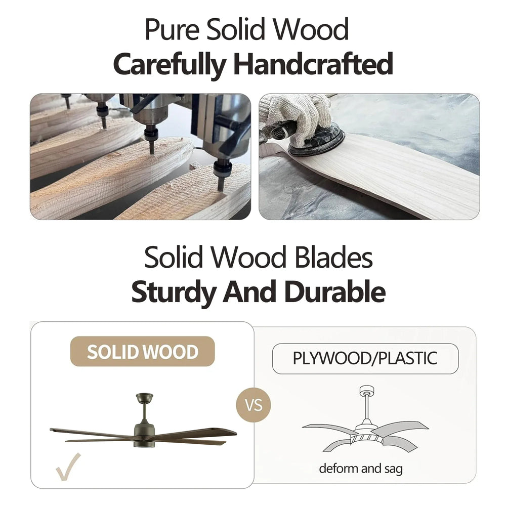 - Quiet Operation: Solid wood blades reduce noise for peaceful comfort.
