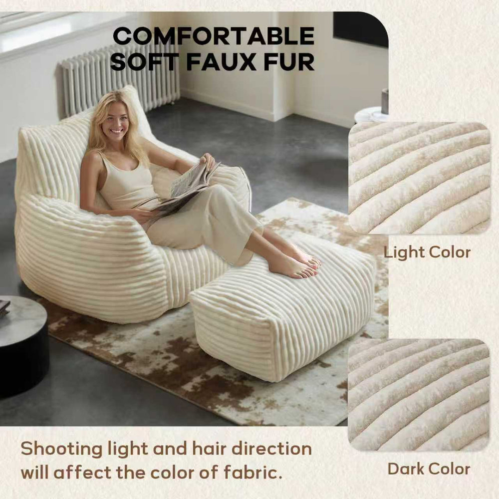 Relax in style and support with this suede sofa chair featuring a matching ottoman. Designed with a 5-zone ergonomic support system, it cradles your neck, back, hips, arms, and legs to promote superior posture whether you're working, reading, or unwinding. The breathable, pet-friendly flannelette fabric offers a soft, suede-like feel, while the high-rebound shredded foam filling quickly regains its shape for lasting comfort. Ideal for compact spaces, this sofa arrives compressed in a convenient "sofa in a box" design that expands to a roomy 46 inches wide. Its neutral white tone seamlessly complements modern and minimalist décor, making it a stylish addition to any room. Elevate your relaxation and seating experience today.