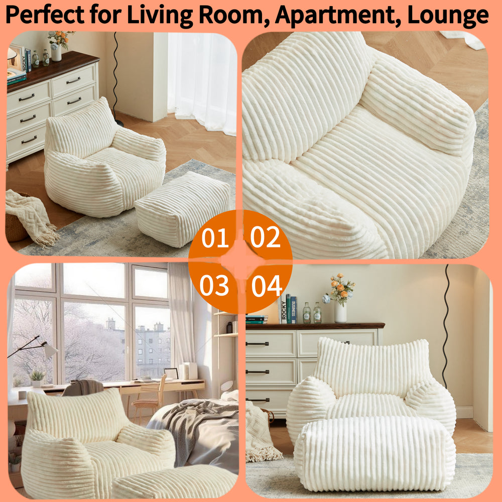 Omega Lifestyles suede sofa chair with ottoman features a 5-zone ergonomic support system and breathable, pet-friendly CordUroy fabric filled with high-rebound shredded foam. Its space-saving sofa-in-a-box design adapts for work, leisure, or naps, ideal for small apartments.