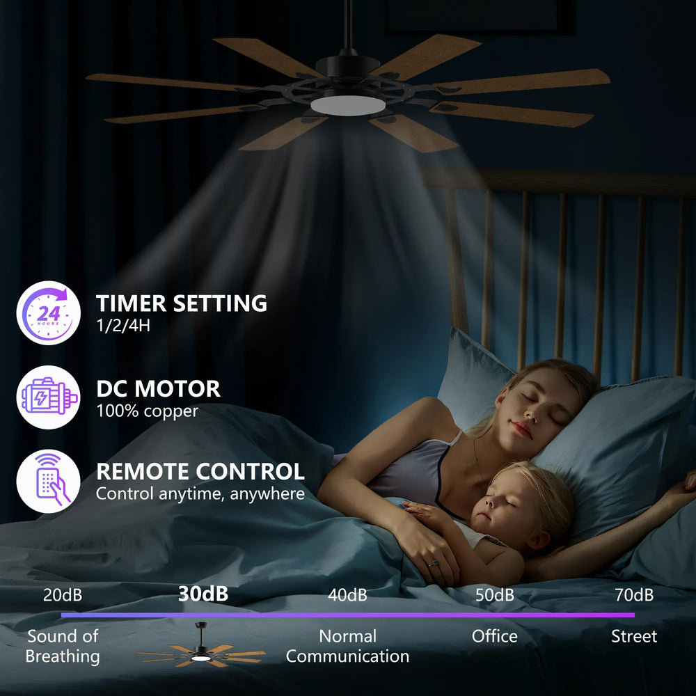 - Remote Control Included: Easily manage fan speeds, lighting, timers, and reversible mode.