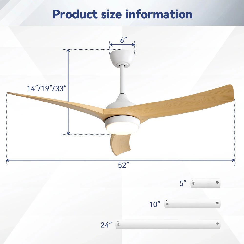 Upgrade your living space with this 52-inch modern ceiling fan featuring a powerful, energy-saving DC motor and three durable ABS blades in a sleek burlywood finish. Designed for medium to large rooms, it provides customizable airflow with six speed settings controlled remotely for ultimate convenience. The integrated 18W LED light offers three adjustable color temperatures, ensuring perfect illumination to match your mood and decor. Its reversible motor adapts for year-round comfort by circulating cool air in summer and warm air in winter. Easy to install with most parts pre-assembled, this fan combines style, performance, and quiet operation to enhance any bedroom, living room, or covered outdoor area. Elevate your home’s comfort and ambiance today.