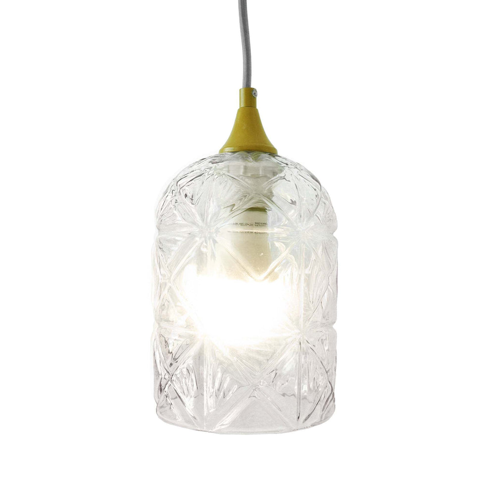 Elevate your interior design with the Glowline Pendant Lamp featuring a stunning crystal-cut glass shade and a sleek gold-painted metal finish. This mid-century modern pendant lamp casts a dazzling light diffusion, creating a warm and inviting ambiance in any space. Ideal for kitchens, dining rooms, or contemporary living areas, its slender design measures nearly 67 inches tall, making it a striking focal point without overwhelming your décor. Compatible with energy-efficient E26 bulbs up to 25 watts, it ensures both style and functionality. With a generous 59-inch wire cord, installation flexibility allows you to customize height for the perfect illumination. Add a touch of elegance and modern charm to your home today.