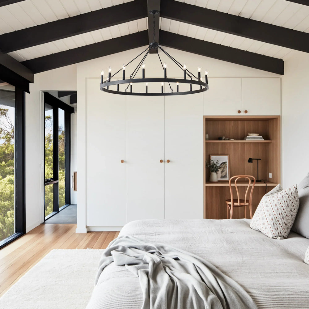 Matte Black Farmhouse Wagon Wheel Ceiling Chandelier