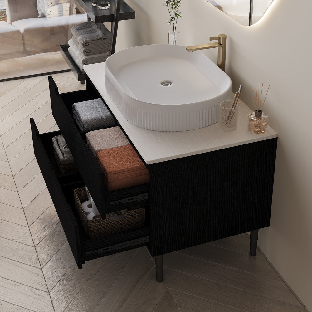 • 36-inch vanity fits compact bathrooms with versatile installation options