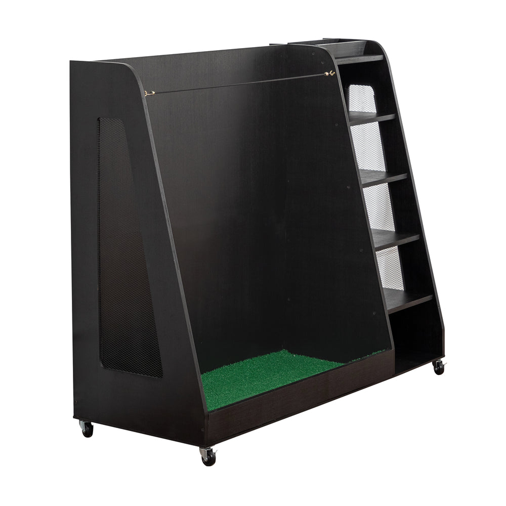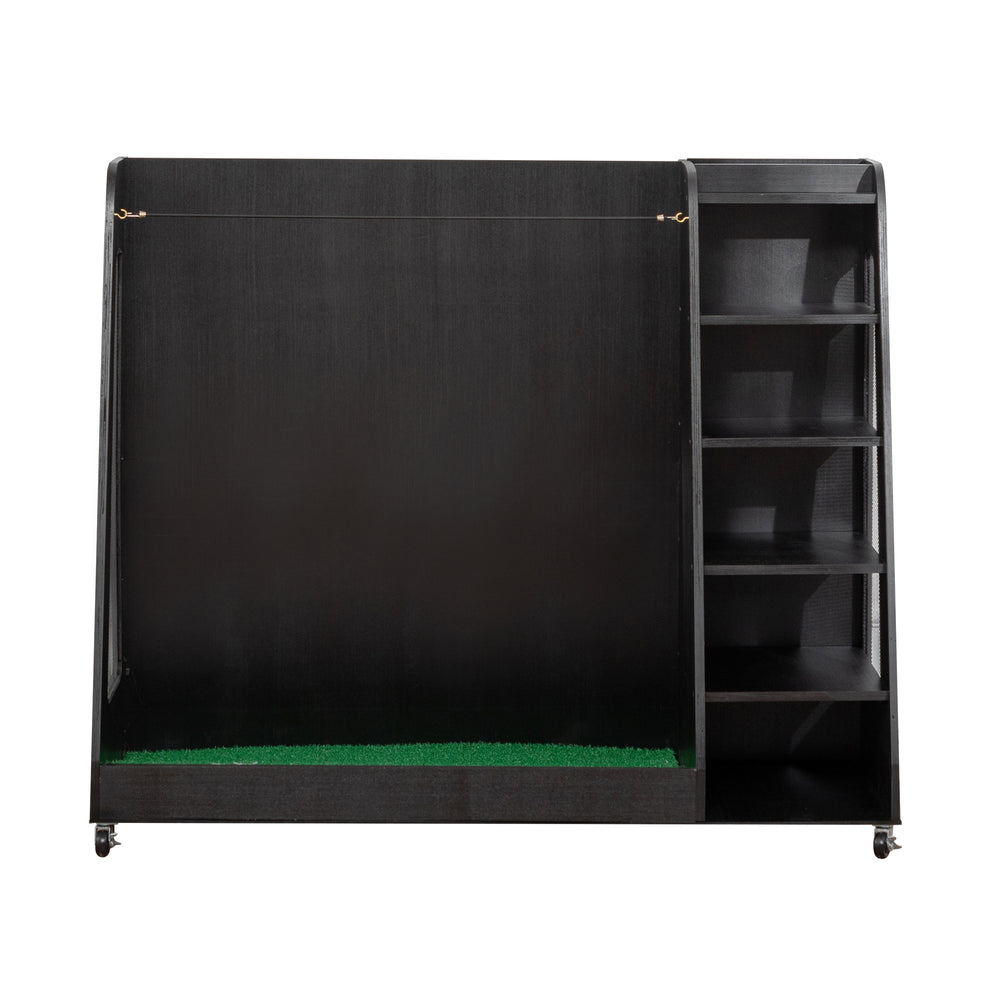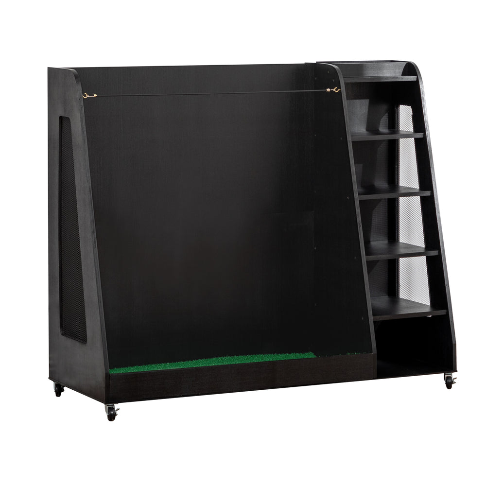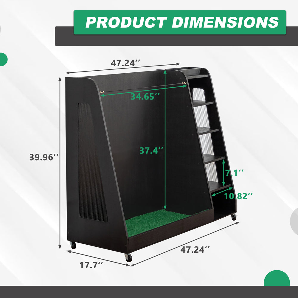 Keep your golf equipment neatly stored and easily accessible with this stylish wooden golf bag storage rack. Designed to hold up to 3 stand bags vertically and securely store 14+ golf clubs, it streamlines organization for all your essential gear. Crafted from durable wood with a sleek black finish, this rack adds both functionality and a modern touch to your garage or indoor space. Multiple compartments accommodate 4-5 pairs of golf shoes, over 50 golf balls, and accessories like gloves and hats, helping you declutter and protect your gear. Its sturdy construction and smart layout ensure your clubs and equipment stay stable, damage-free, and ready for your next round. Easy to assemble in just 15 minutes, this versatile rack also doubles as a great organizer for other sports equipment or tools. Elevate your storage solution today and enjoy a clean, orderly space for all your golf needs.