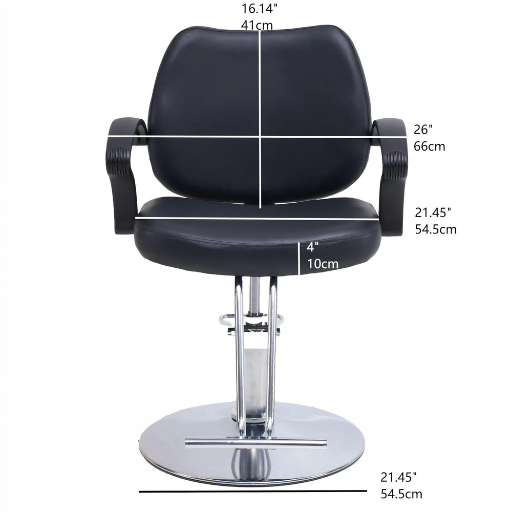 Designed for hair stylists seeking both style and functionality, this black barber chair offers maximum comfort and convenience. Upholstered in premium black PU leather with foam cushioning, it provides a clean, comfortable seat that’s easy to maintain. The heavy-duty hydraulic pump allows smooth, precise height adjustment to accommodate clients of all sizes, while the 360° swivel ensures effortless maneuverability during styling. Constructed with a sturdy steel frame, this chair supports up to 350 pounds, combining durability with sleek modern design. Its compact dimensions—26 inches long by 37 inches wide and 36 inches tall—fit perfectly in any salon or home setup. Upgrade your workspace with this reliable, ergonomic styling chair and elevate your client experience today.