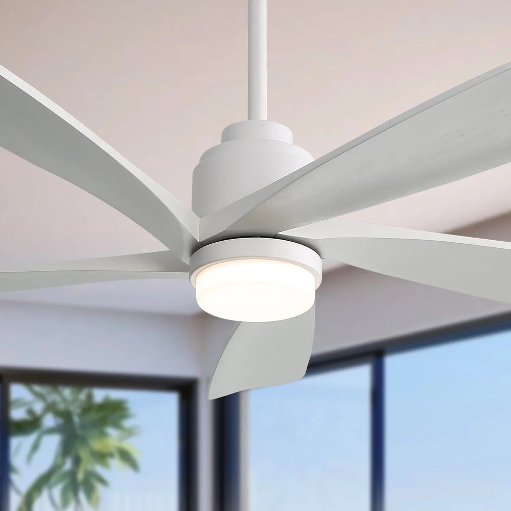Enhance your home environment with this stylish 52-inch ceiling fan featuring five solid wood blades and a sleek white finish. Designed for both modern and rustic spaces, it offers powerful, quiet airflow powered by an energy-efficient reversible DC motor, perfect for cooling in summer and circulating warm air in winter. The integrated dimmable LED light supports three color temperatures (3000K/4000K/6000K) so you can tailor your lighting to any mood or task. Control speed, direction, lighting, and set timers easily via the included remote or smart app for ultimate convenience. With durable metal and wood construction, this ceiling fan not only elevates your room’s style but also provides reliable performance for medium to large rooms up to 320 sq.ft. Transform your living space with efficient climate control and customized lighting—upgrade your comfort today.