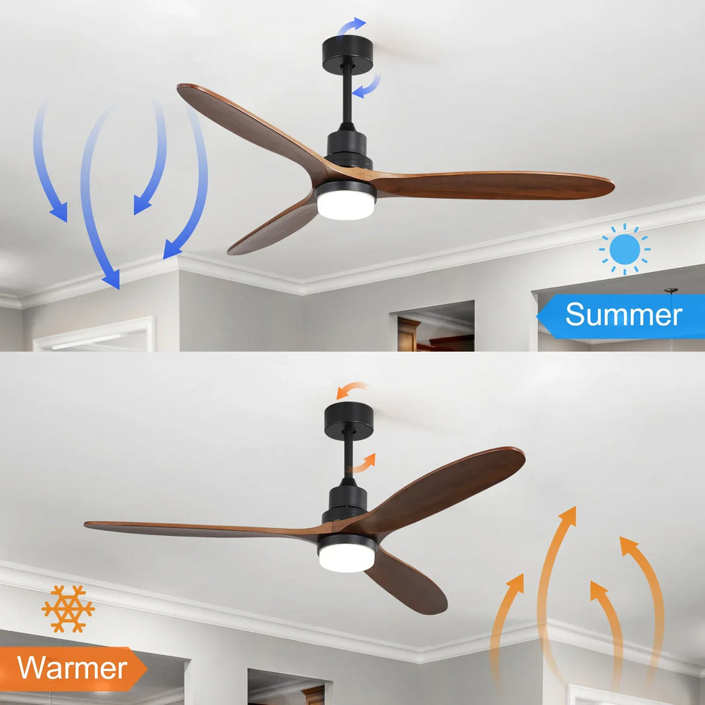 Enhance your home with this modern 60-inch ceiling fan featuring beautifully crafted solid walnut wood blades and a matte black metal body. Designed for both style and function, its reversible motor ensures year-round comfort by circulating warm or cool air efficiently. The integrated dimmable 18W LED light allows you to customize the ambiance from bright task lighting to a soft, relaxing glow. Powered by an energy-saving DC motor, this fan operates quietly to create a peaceful environment indoors or on covered patios and outdoor spaces. With a 15.6-inch height and remote control convenience, it’s the perfect addition to any bedroom, living room, or cafe. Elevate your space with timeless design and performance today.