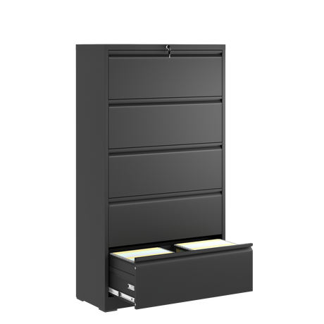 Modern Black Steel 5-Drawer Locking Lateral File Cabinet
