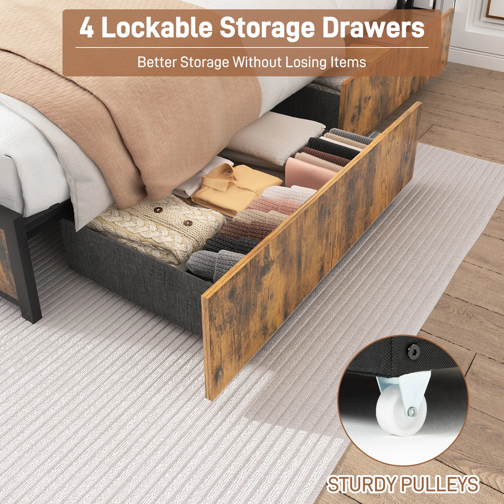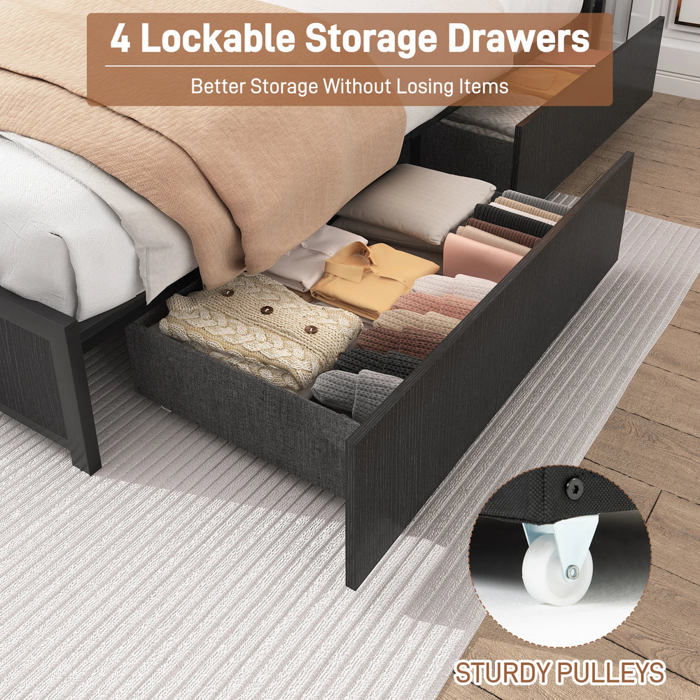 - Ample Storage Space: Four large drawers beneath the frame to organize clothes and essentials.