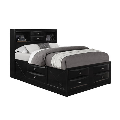 Queen Black Particle Board Storage Bed With Drawers