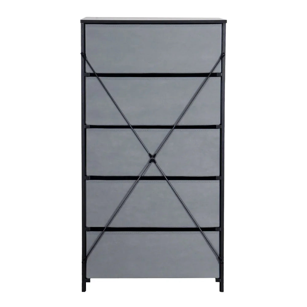Upgrade your bedroom or living space with this sleek 5-Drawer Dresser, featuring a modern design that blends style and functionality. Crafted with a sturdy MDF wooden frame and durable metal accents, this dresser provides lasting stability and a refined look. Five large, fabric drawers offer generous storage for clothing, toys, blankets, or everyday essentials, keeping your space organized and clutter-free. The lightweight construction makes it easy to move and perfect for apartments, dorm rooms, or compact bedrooms. A water-resistant wooden top adds extra versatility, ideal for displaying lamps, decor, or electronics. Elevate your home organization with this elegant and practical dresser today.