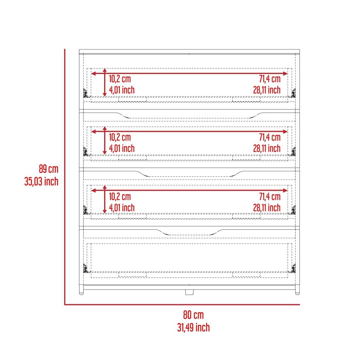 - Four Spacious Drawers: Provide generous storage for clothing and accessories.
