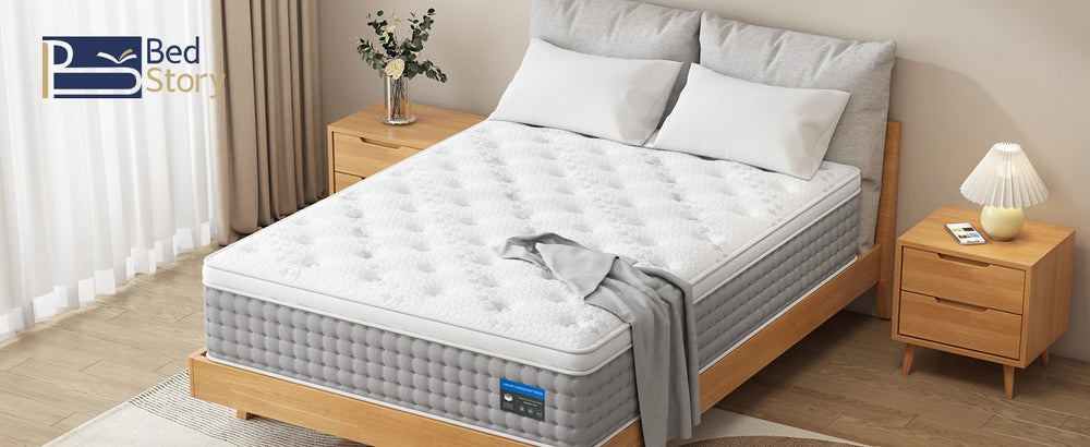 BedStory hybrid mattress combines gel-infused memory foam and pocket springs for cooling, motion isolation, and spinal support. Breathable, CertiPUR-US certified cover ensures a healthy sleep environment. Available in multiple sizes for enhanced comfort and durability.