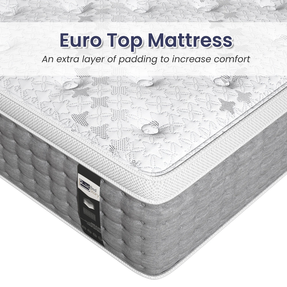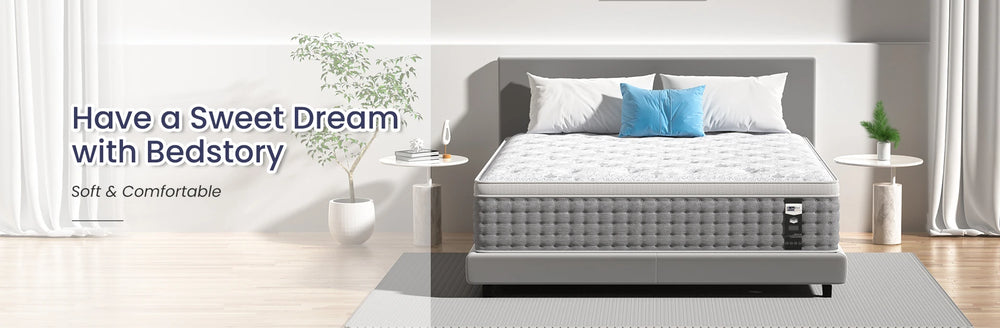 BedStory hybrid mattress combines gel memory foam and pocket springs for cooling comfort, motion isolation, and proper spinal support. Quilted with breathable, OEKO-TEX certified fabric, it offers a safe, non-toxic sleep environment. Available in multiple sizes for restful home use.