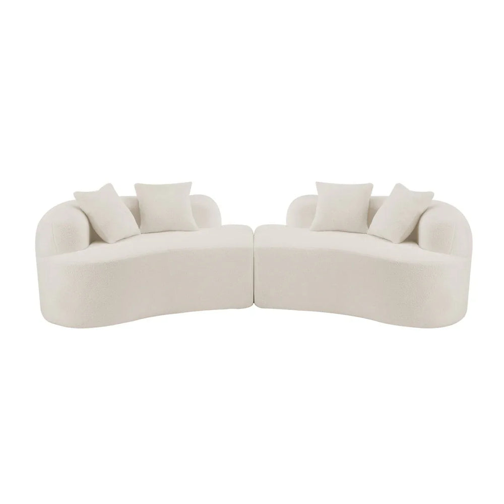 Curved 4-Seater White Teddy Velvet Foam Sofa - Omega Lifestyles