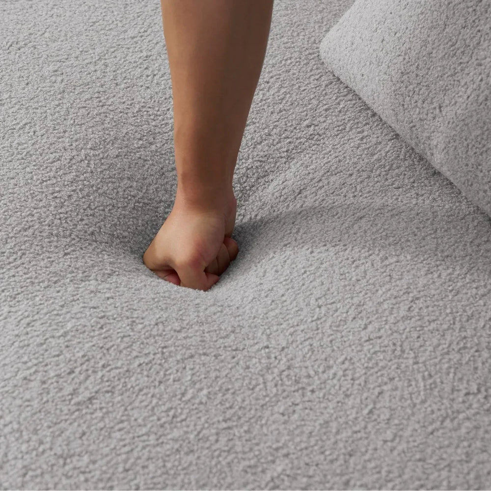 • Earn $0.00 in Dream Easy® Rewards instantly with purchase of the Curved Four-Seater Grey Teddy Velvet Foam Sofa!