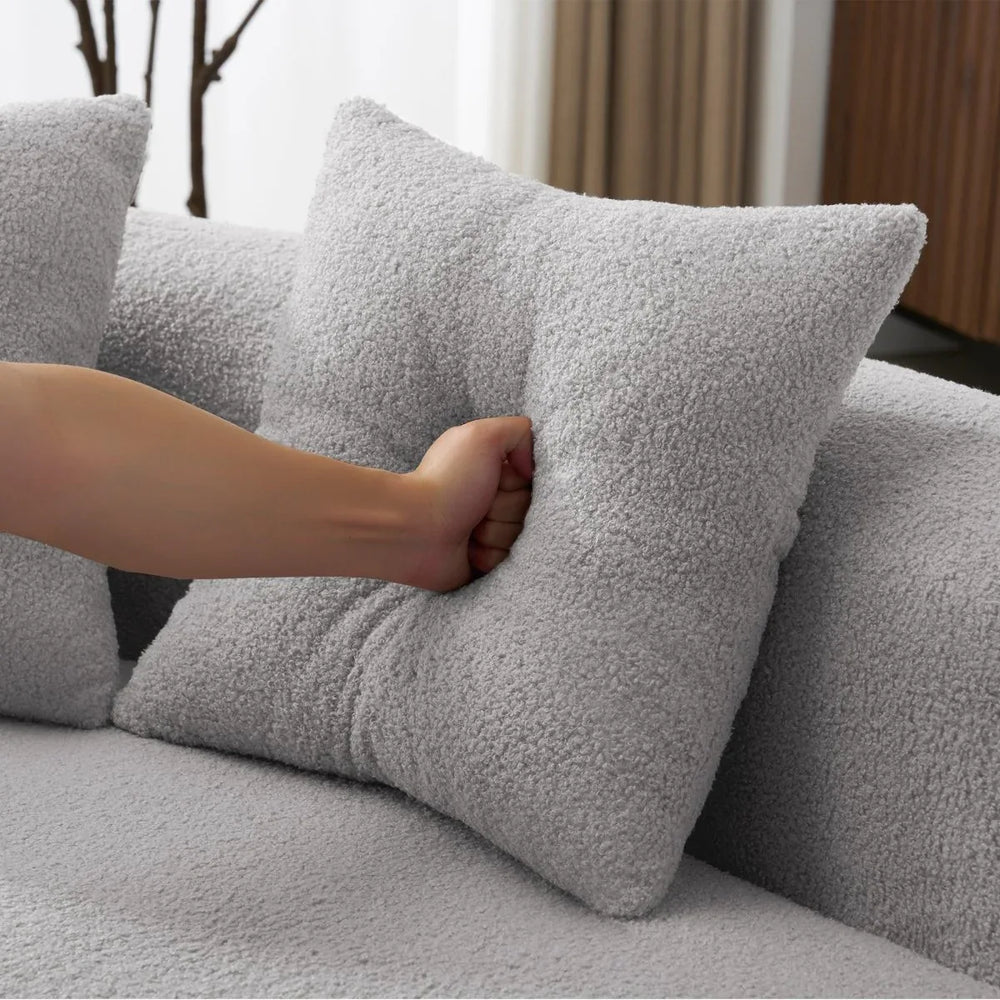 Curved Four-Seater Grey Teddy Velvet Foam Sofa