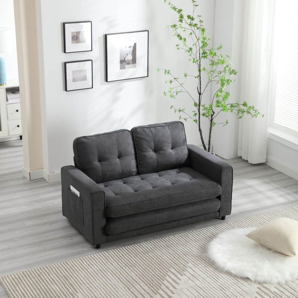 Experience versatile comfort and style with this 3-fold sofa bed, expertly designed to transform your living room or guest space effortlessly. Wrapped in soft, durable velvet fabric, it offers a plush seating experience that quickly converts into a cozy bed with convenient pull-out straps. Ideal for small apartments or multipurpose rooms, this space-saving loveseat provides an elegant solution without sacrificing comfort. Additional side storage bags keep essentials within reach, making your daily relaxation seamless and organized. With resilient thick foam cushioning and elastic cotton support, you’ll enjoy lasting comfort whether seated or sleeping. Elevate your home with this innovative futon couch that blends functionality and sophistication—perfect for living rooms, bedrooms, or guest areas. Upgrade your space today.