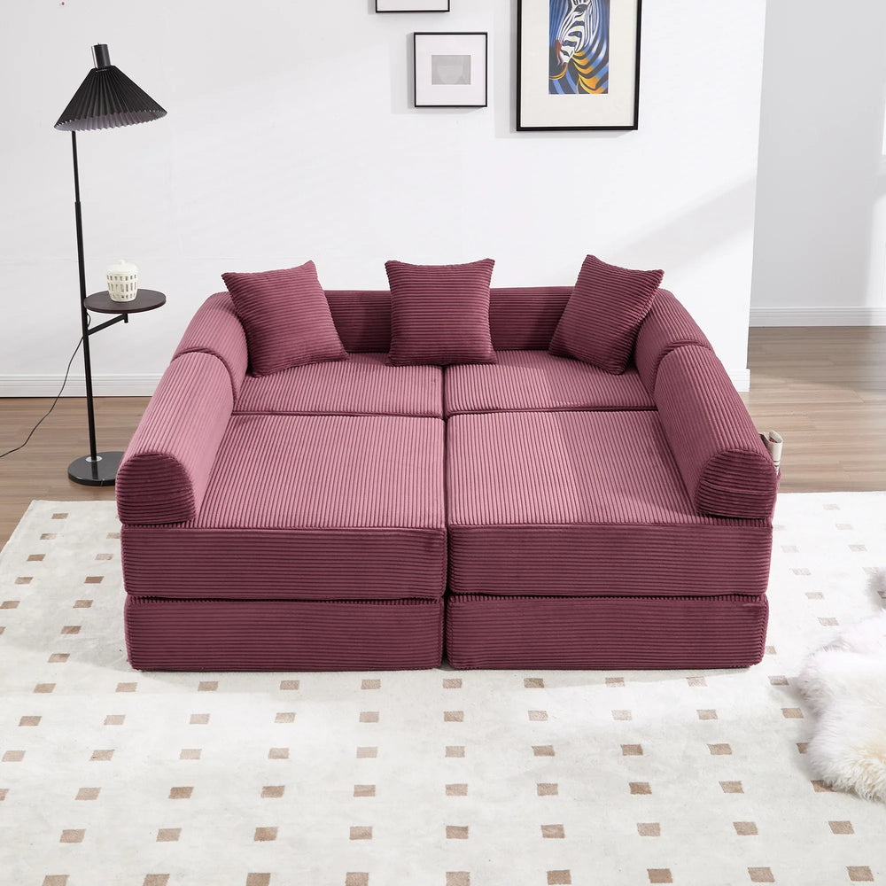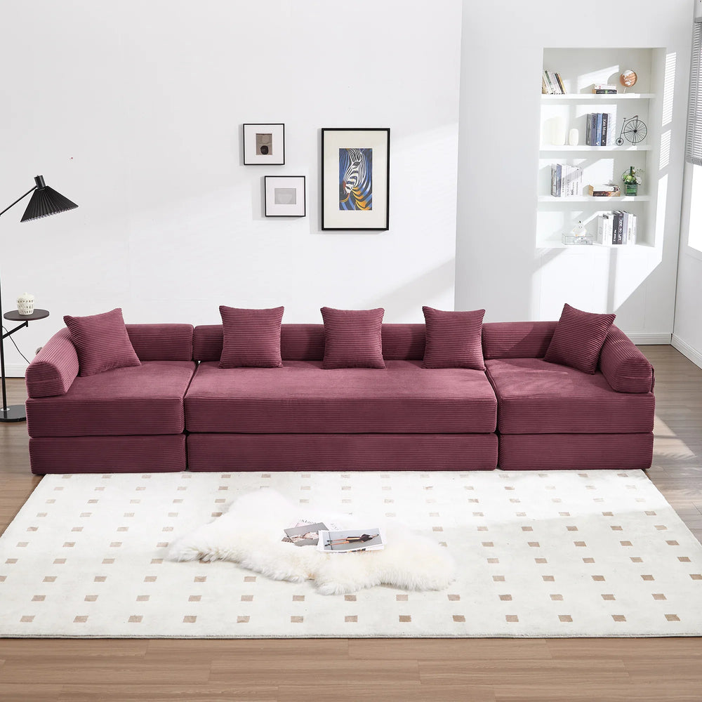 Transform your living space effortlessly with this convertible folding sofa bed, crafted with soft wine red corduroy fabric and high-density memory foam for unmatched comfort. Designed to adapt to your lifestyle, it easily switches between six forms including a multi-person sofa, lounge chair, mattress, and floor mattress — perfect for living rooms, dormitories, guest rooms, or home offices. The plush corduroy upholstery offers breathable softness that cradles your body, while the ergonomic L-shaped armrests with high-density pillows provide stable support and pressure relief. Built on a sturdy fixed frame and equipped with detachable storage pockets, this folding sofa blends functionality and convenience. Delivered compressed and vacuum-sealed for eco-friendly shipping, it requires no assembly—just unpack and let it regain its shape over 48-72 hours. Elevate your relaxation and optimize your space with this stylish, multi-functional furniture piece today.