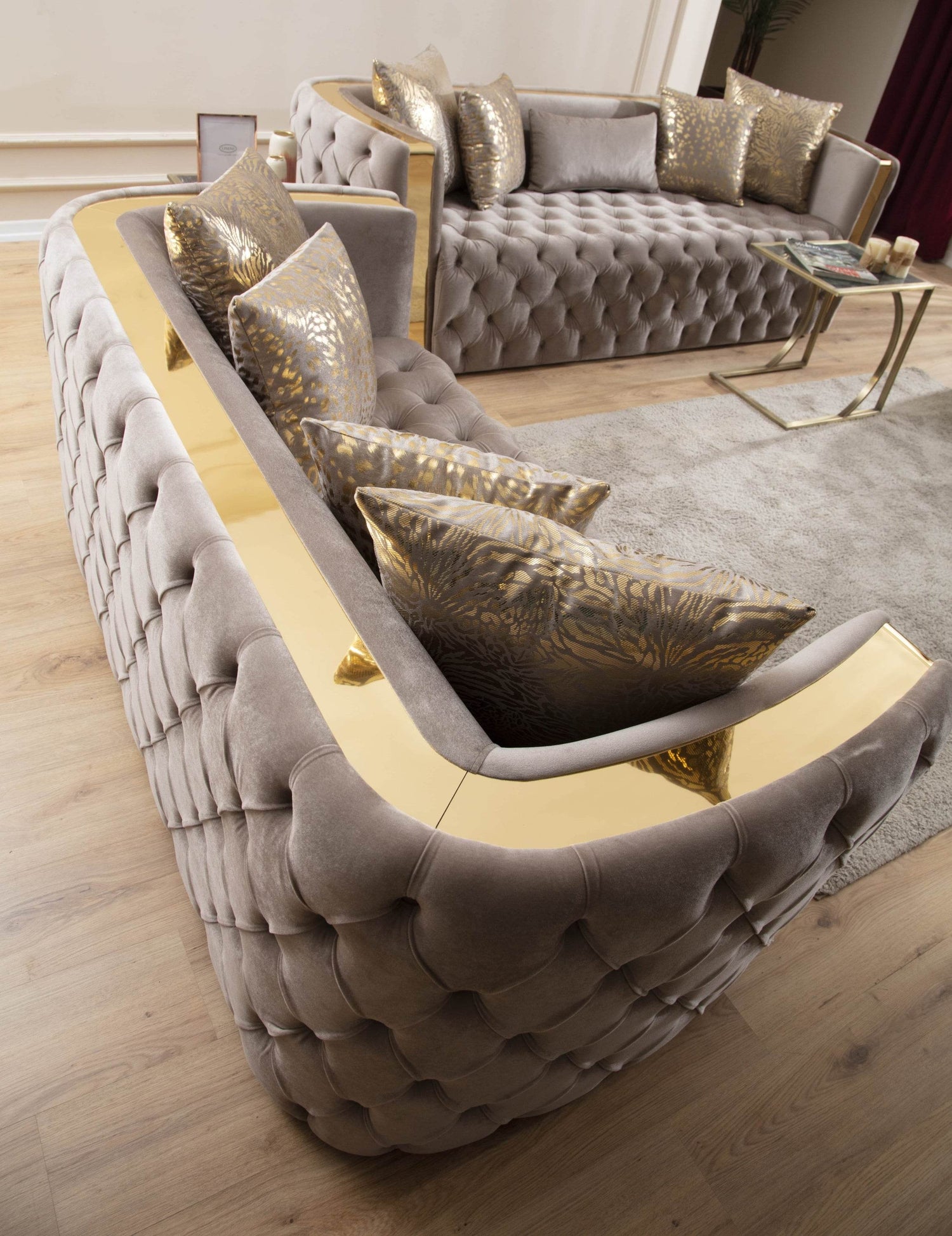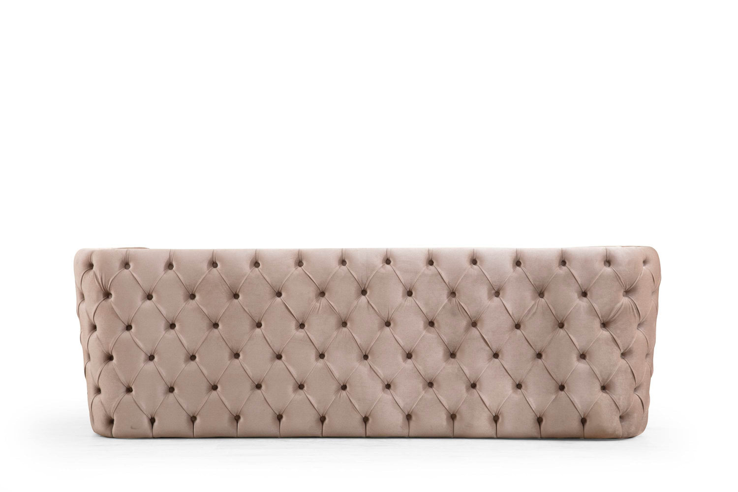 Naomi Velvet Button Tufted Firm Sofa With Gold Accents - Omega Lifestyles