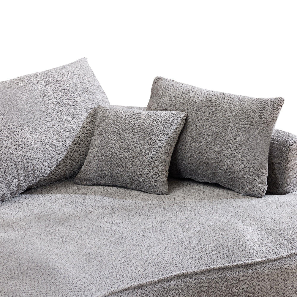 Refresh your living space with this 124.5-inch modern boneless sofa, designed to blend minimalist style with superior comfort. Upholstered in soft yet durable grey chenille fabric, it offers a gentle touch that stands up to daily use. The unique curved design creates a striking visual centerpiece, enhancing any room with artistic flair. Filled with high-resilience foam and featuring three supportive back pillows plus four plush throw pillows, this sofa delivers medium-soft seating comfort ideal for relaxing or entertaining. With no assembly required and a spacious design that supports up to 1,600 pounds, it perfectly fits various living room layouts from cozy apartments to expansive homes. Elevate your home’s style and comfort effortlessly today.